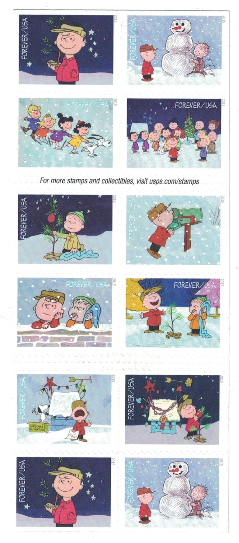 Home All ITEMS 2015 USPS Charlie Brown Xmas Pane of 20 Forever Postage Stamps